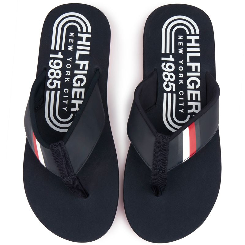 Make a splash with the Tommy Hilfiger Padded Beach sandals. These sleek flip-flops feature a branded upper with the iconic flag logo for standout style. Slip your feet into the flip-flops with padded straps for poolside and beach comfort that lasts all day.