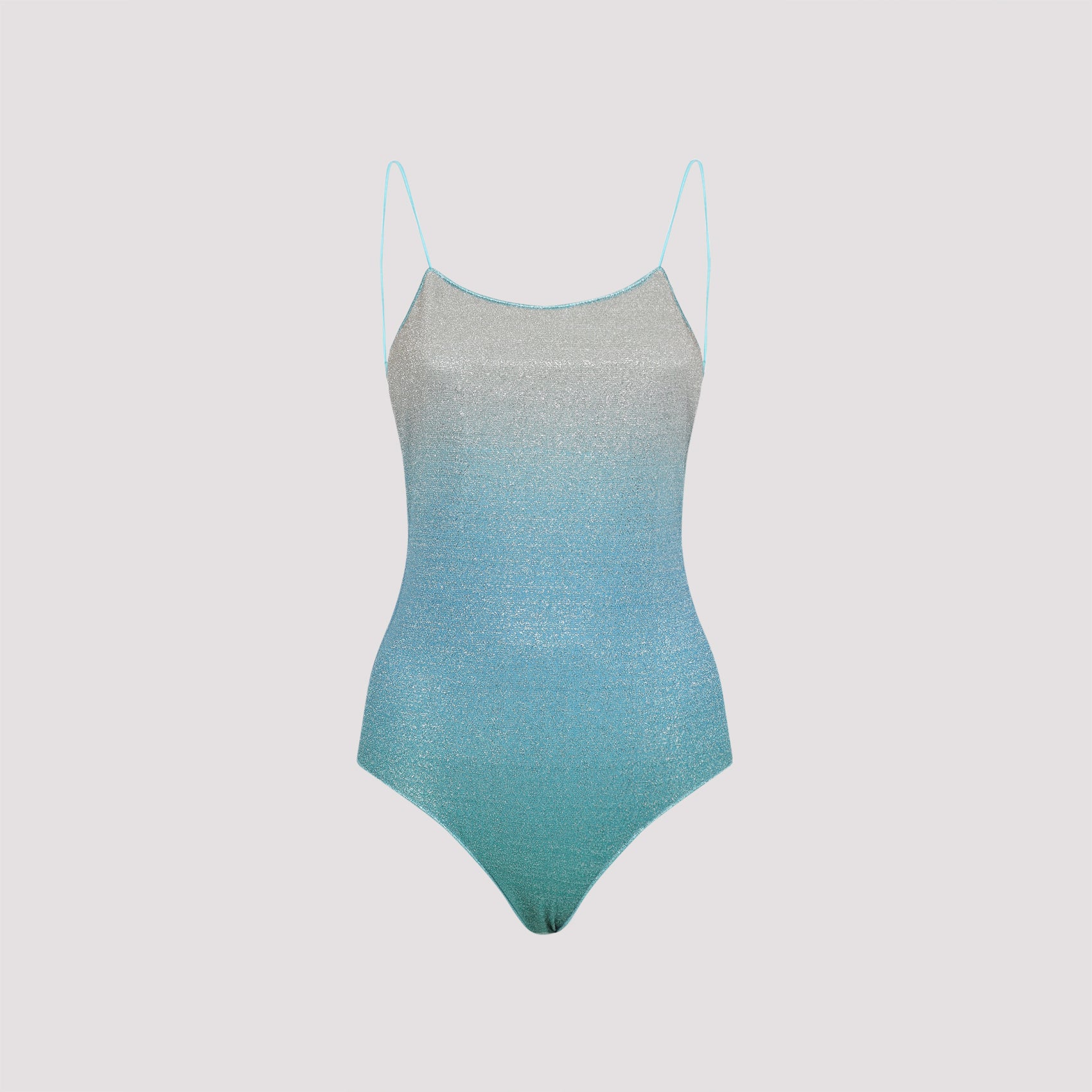 Oseree Swimwear Lumier Shade Maillot One-Piece Light Blue Polyamide Swimsuit. Crafted from lurex light blue and turquoise tech fabric, round neckline, super fine straps, open back, regular fit, fully lined.