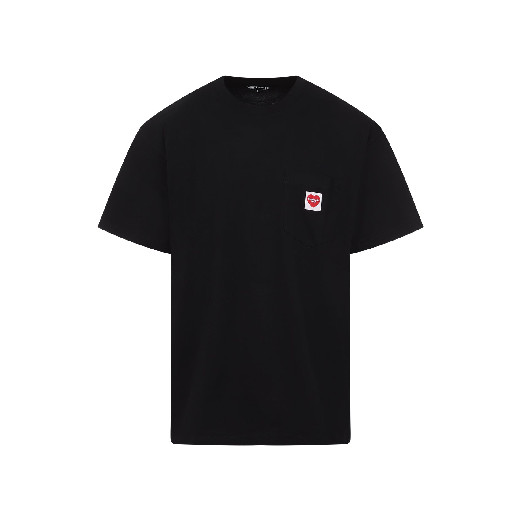 Carhartt Wip SS Pocket Heart Black Cotton T-shirt. Black cotton, round neckline, patch pocket with heart-shaped branded label, dropped shoulders, short sleeves, straight hem, loose fit