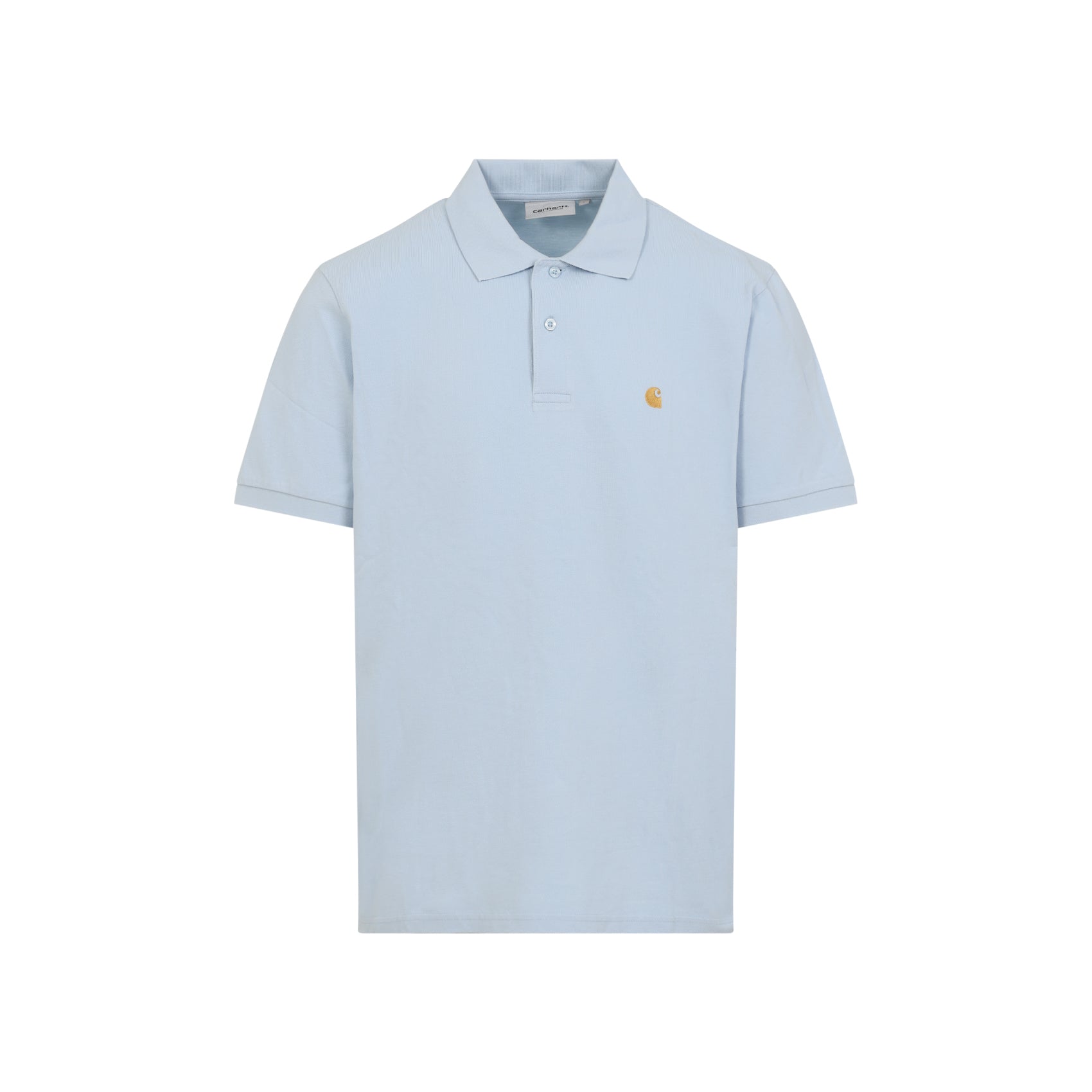 Carhartt Wip Air Sky Blue Cotton Short Sleeves Chase Piquet Polo. Pure air sky blue cotton polo, classic polo collar, chest gold-tone embroidered logo, short sleeves, straight hem.