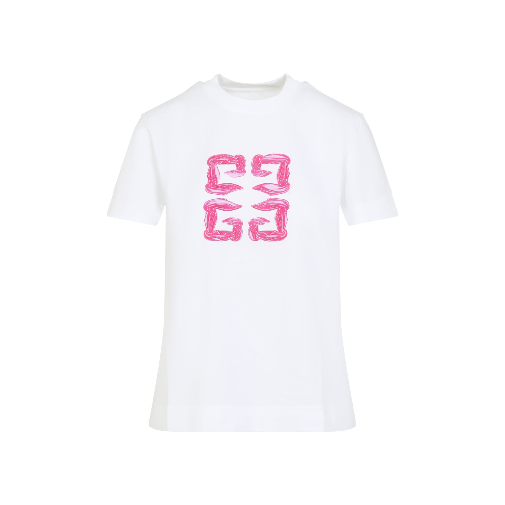 Givenchy White Cotton Slim T-Shirt. Pure white cotton t-shirt, round neck, chest pink signature 4G logo, short sleeves, straight hem, tonal stitching.