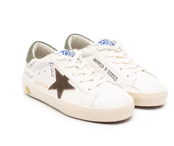 white/brown/green leather grained texture signature suede star patch to the sides all-over slogan print logo patch at the tongue perforated embellishment round toe front lace-up fastening contrasting branded heel counter branded leather insole flat rubber sole This piece comes complete with a protective dust bag.