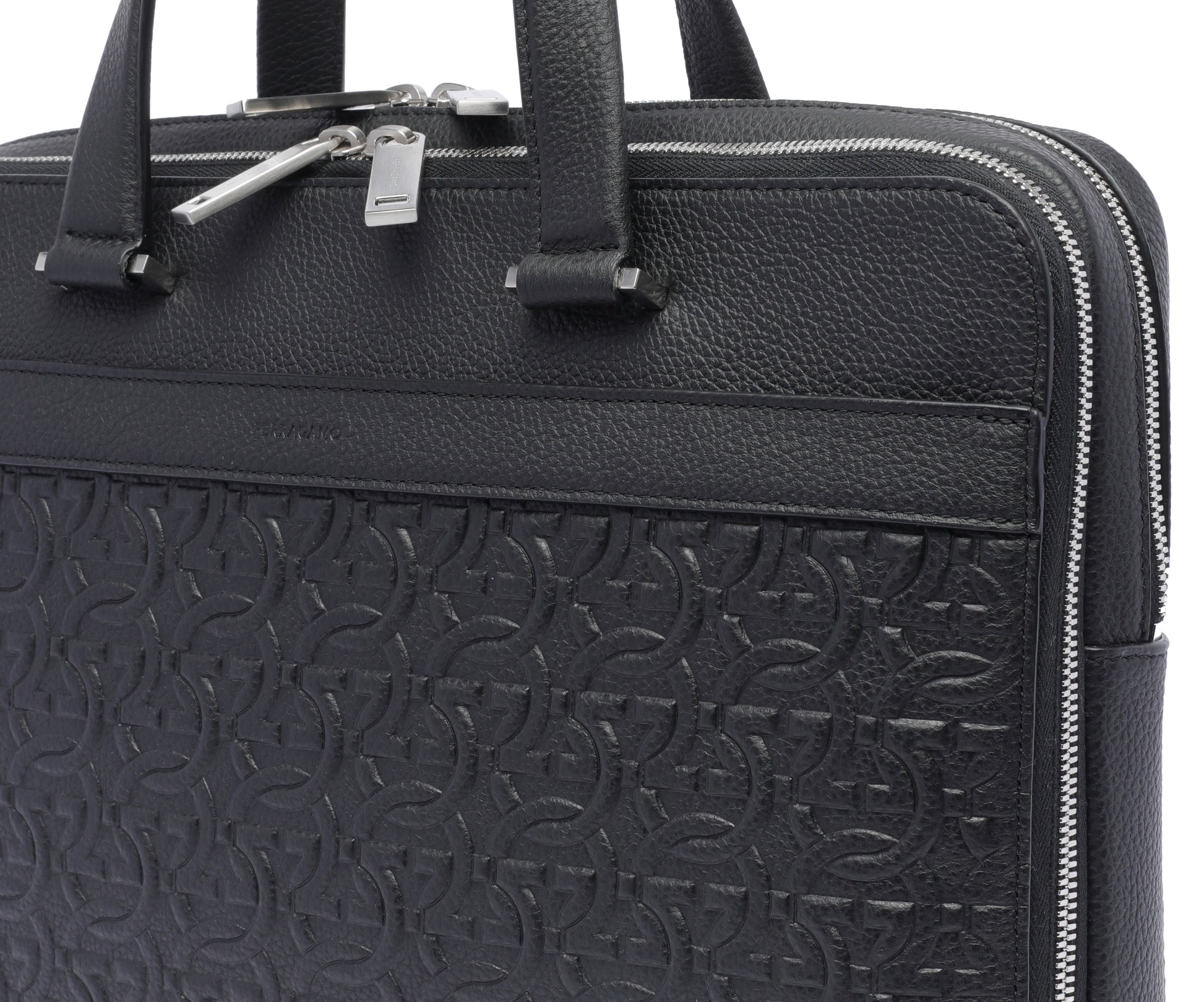 Ferragamo Black Ferragamo Monogram Business Bag, Zip Closure, 2 Sections, 2 Inner Open Pockets, External Pocket With Magnetic Closure, 2 Handles, Monogram Allover, 30x36x6 cm