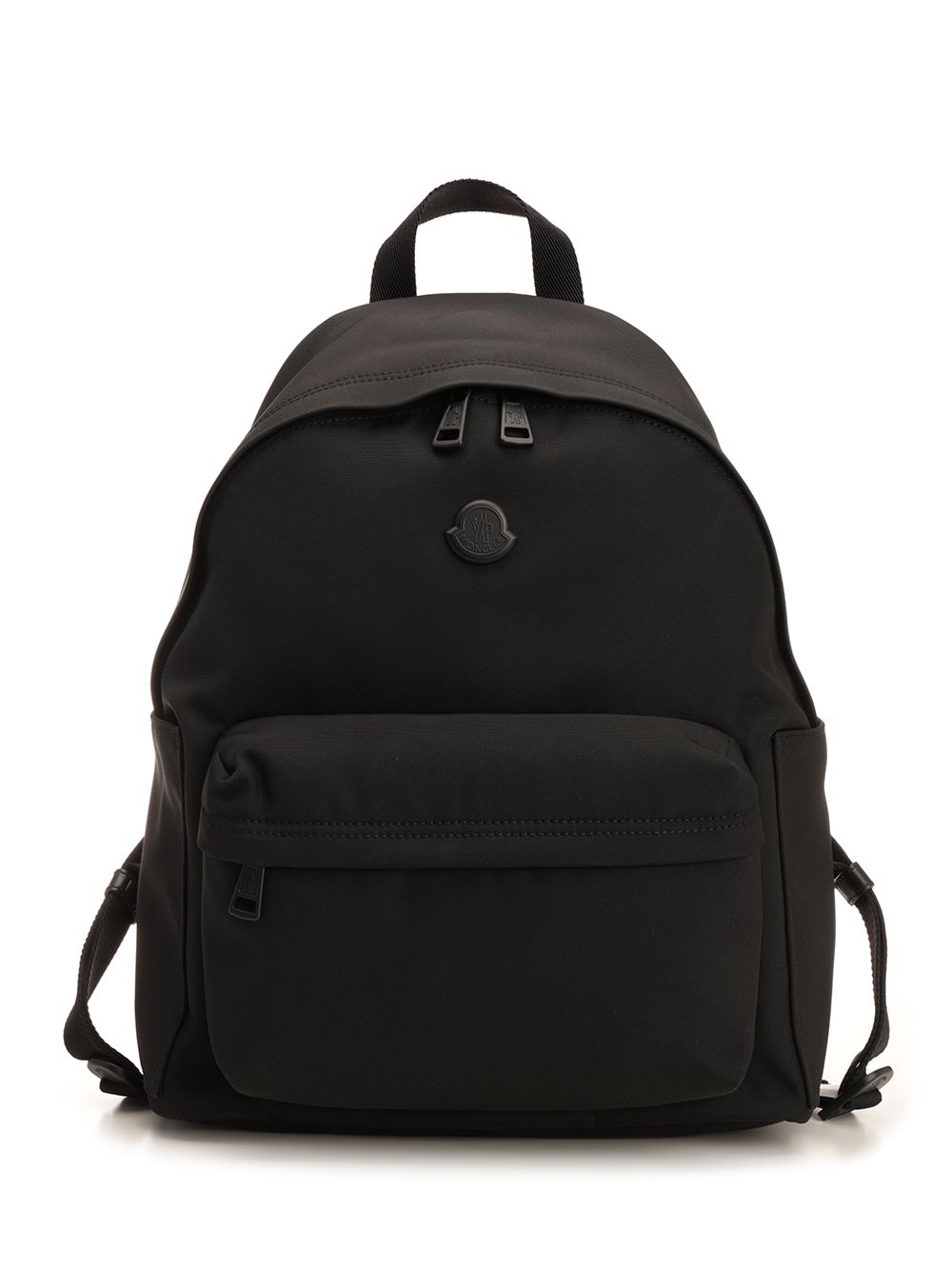 "Pierrick" backpack by Moncler in water-repellent nylon, with two-way zip closure, leather trim and metal logo