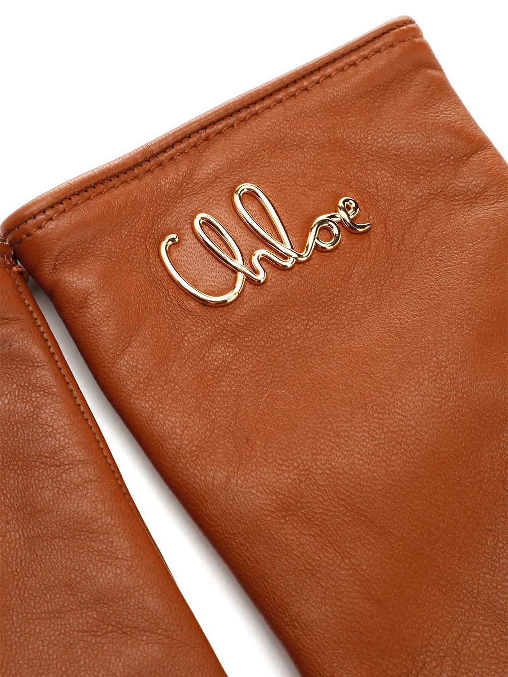 "Chloé Iconic" gloves in soft lambskin lined in wool and with gold Chloé logo.