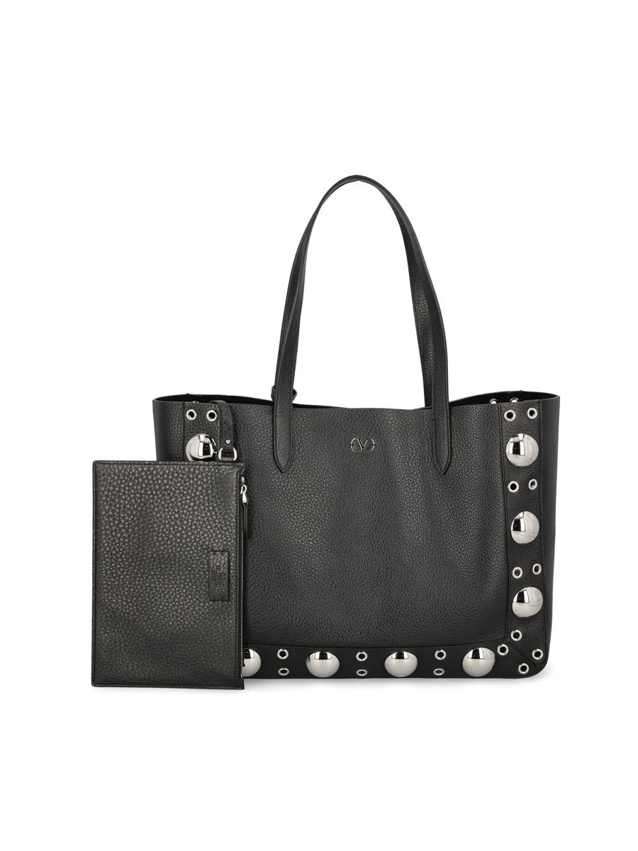 - Material: calfskin leather - Color: black - Interior: removable pouch - Other details: profile decorated with ball studs and rivets - Signature logo applied on front - 2 leather handles - Handle drop: 24 cm - Made in Italy - Dust bag - Item number: 6W0B0R79MJL0NO
