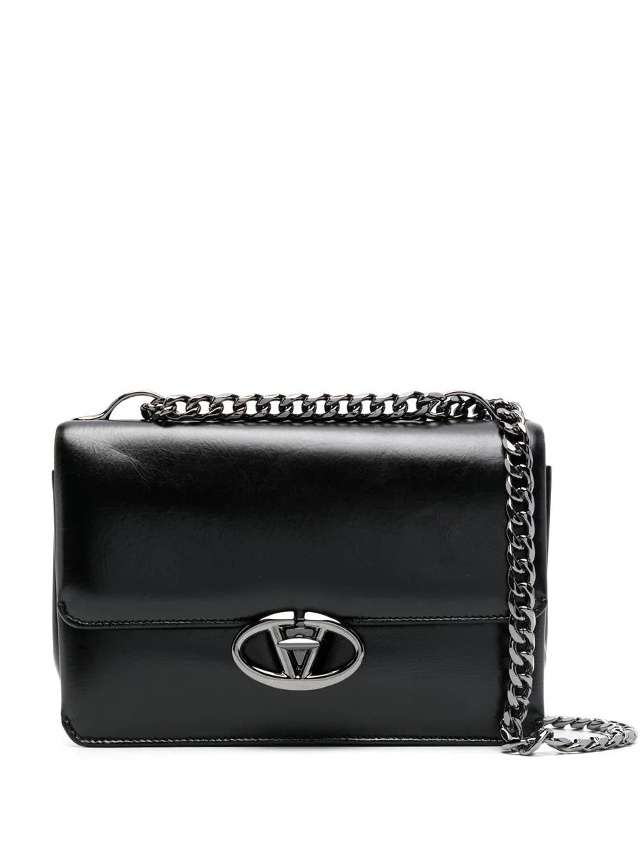 Black calf leather smooth grain foldover top with twist-lock fastening VLogo Signature sliding chain-link shoulder strap front flap pocket main compartment internal zip-fastening pocket debossed internal logo leather lining This piece comes complete with a protective dust bag. DEPTH: 7.0 Centimetres HANDLE: 30.0 Centimetres HEIGHT: 15.0 Centimetres STRAP: 119.0 Centimetres WIDTH: 22.0 Centimetres